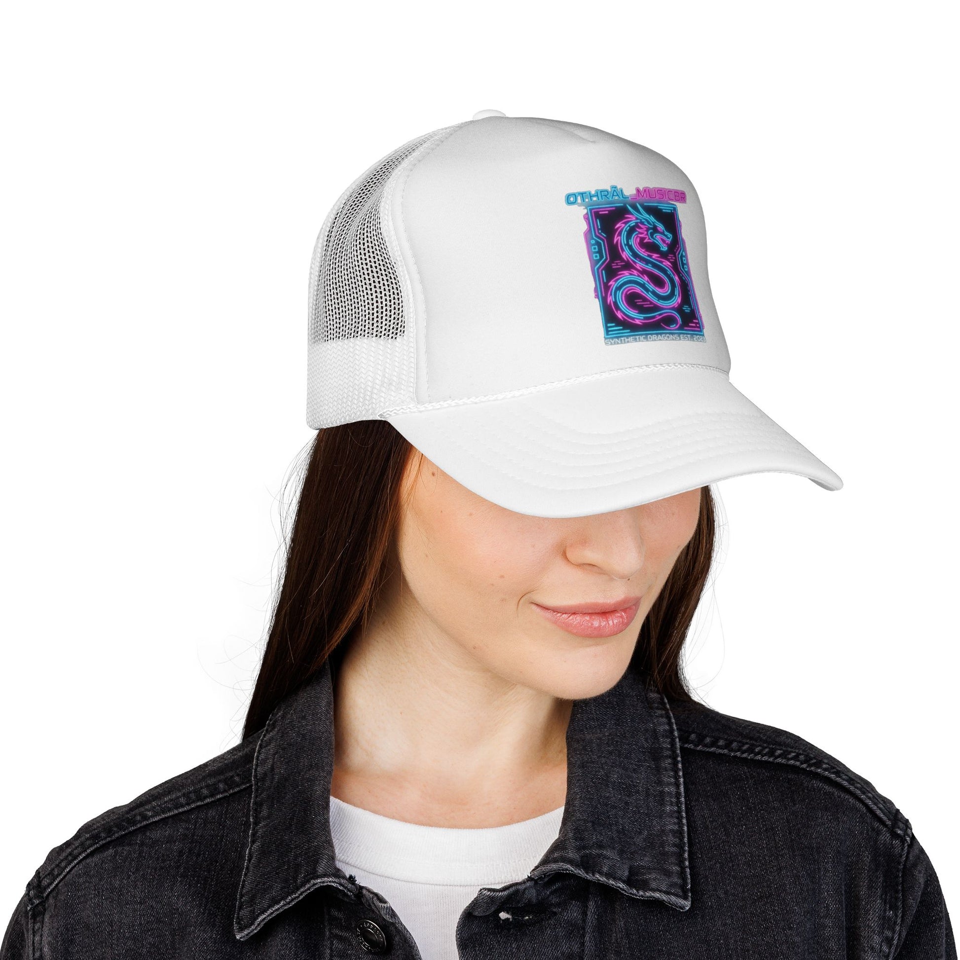 Boné de Caminhoneiro "Dragão Neon" — Chapéu de Tela Retrô Vaporwave com Dragão